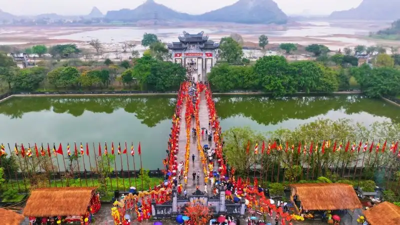 Từ góc nhìn trên cao, Chùa Bái Đính hiện lên như một bức tranh xuân viên mãn.