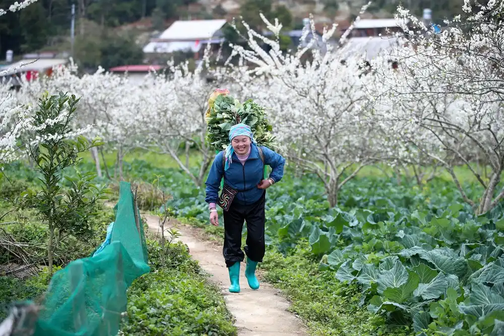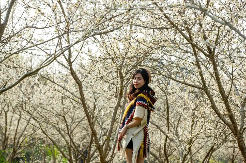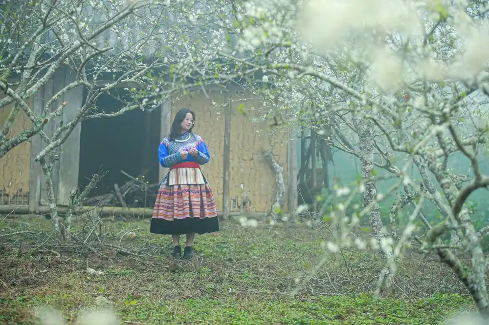 Mùa hoa mận ở Bắc Hà là hình ảnh những cô gái trẻ vùng cao, khoác lên mình chiếc váy sắc màu, xúng xính nở nụ cười đầy ngọt ngào, e lệ bên những vườn hoa mận tinh khôi.