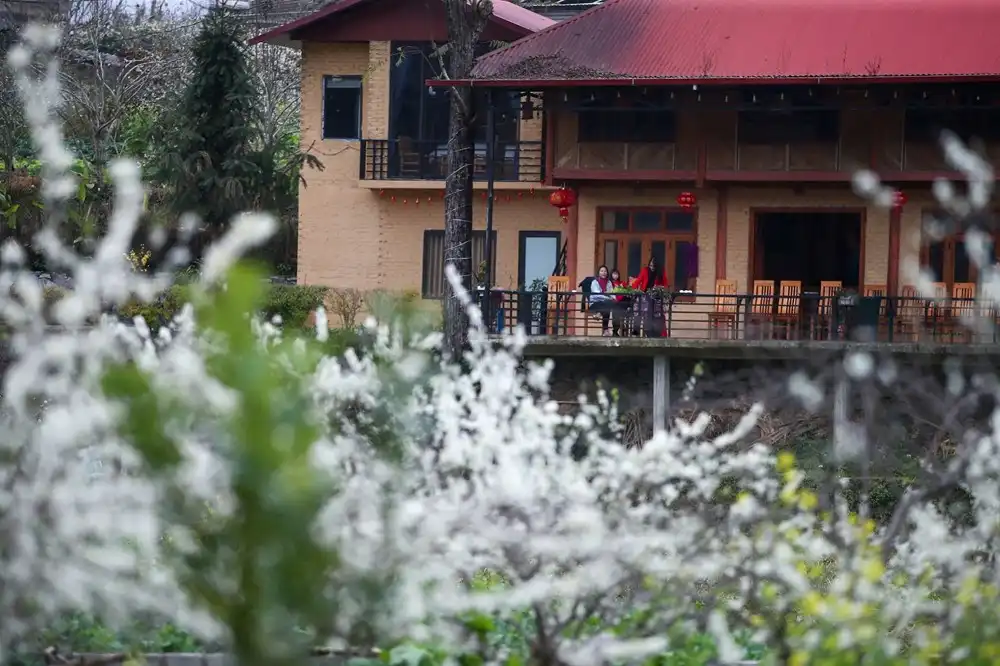 Cả bản làng như bị bao phủ bởi vẻ đẹp tinh khôi của loài mận Tam Hoa đầy giản dị mà chẳng kém phần kiêu sa này. Sắc hoa tinh khôi, nở rộ trong những khu vườn, bên cạnh đầu nhà, cánh hoa mỏng manh, rơi vãi trên những con đường đất đỏ, để rồi nơi đây hiện lên tựa bức tranh thiên nhiên đầy thi vị, quyến rũ.